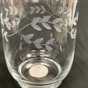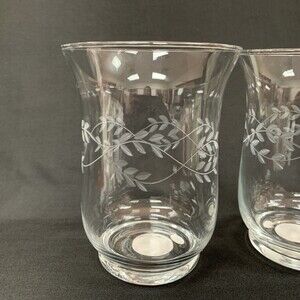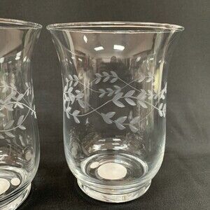 Elements Candle Holders Clear Glass Etched Leaves 5 7/8" High