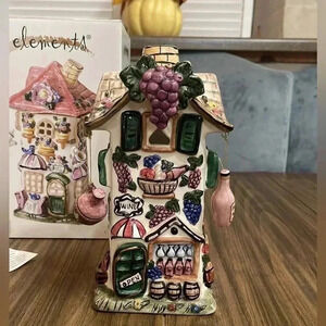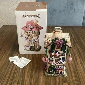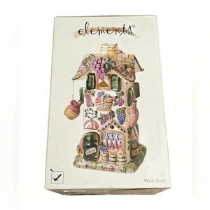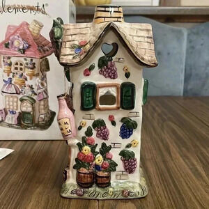 Elements Ceramic Wine Shop Village House Tealite Holder Hand Painted Cottagecore