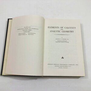 Vintage, Elements of Calculus and Analytic Geometry by George B. Thomas, Jr. Department of Mathematics Massachusetts Institute of Technology. Lots of notes inside. Highlighting, underlining, and other written notes. Also a small note paper that was taped inside the back cover.