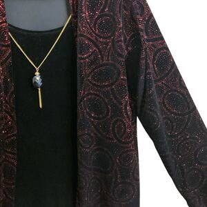 Elementz 3-in-1 Velvet Red Sparkling Paisley Black Top Attached Necklace Size L