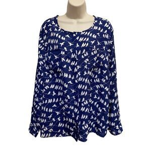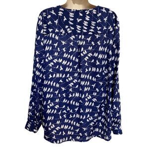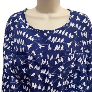 Elementz Birds on a Wire Button Front Blouse Convertible Sleeves Blue Sz XL