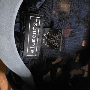 Elegant black blouse with floral texture. Button-up design. Perfect for any occasion.