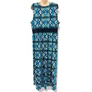 Elementz Blue Green Watercolor Print Sleeveless Maxi Dress Size 1X 16 Plus Size