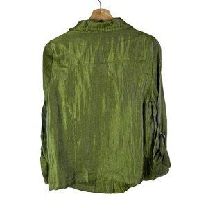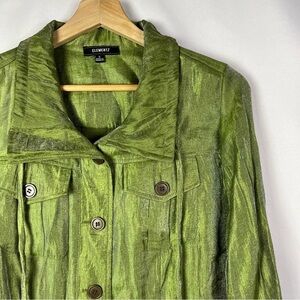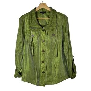 Elementz Green Satin Button Down Shirt Jacket S