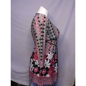 Elementz Ladies Large Floral Blouse Top, Deep V- Neckline w/ insert, 3/4 Sleeve