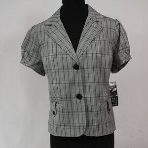 Elementz NWT Short Sleeved Fitted Blazer in Grey Plaid Size Large