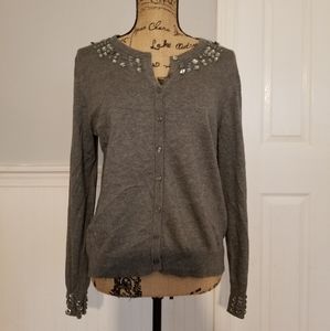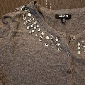 Size M Elementz sweater. Rhinestone across the front neckline and around the bottom of the sleeves. A few Rhinestones have come off due to the stitching coming loose. Not noticable. Good condition otherwise.