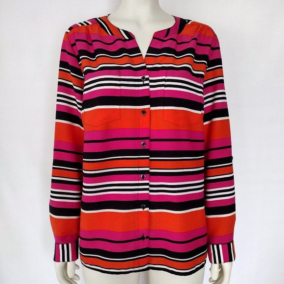 Elementz Vibrant Orange and Pink Stripe Roll Tab Sleeve Blouse