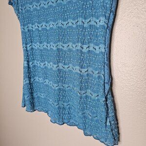 Elementz Y2K Size Small Blue Baby Tee Fairycore Patchwork Floral Lace Textured