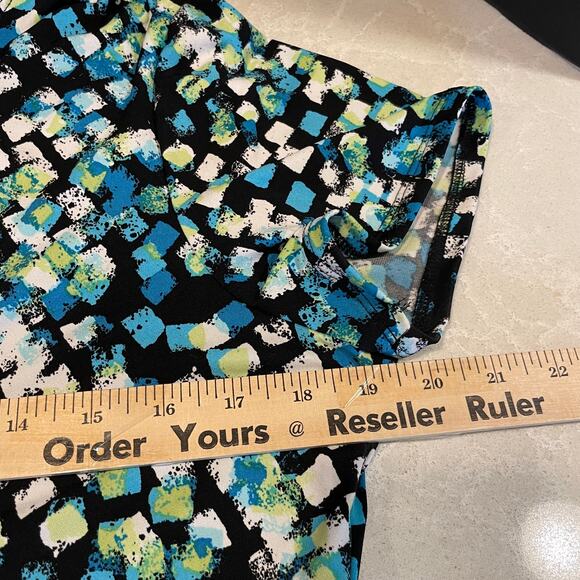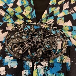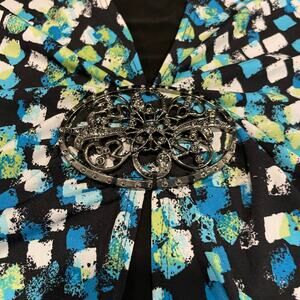 Elementz women's blouse two-fer Medium short sleeves relaxed silver clasp blue