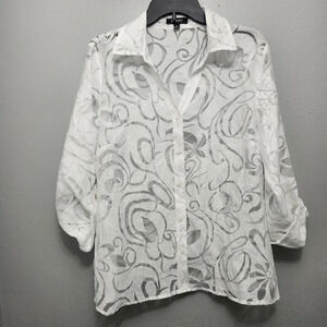 Elementz women's sheer blouse top long sleeve button down size M white linen blend