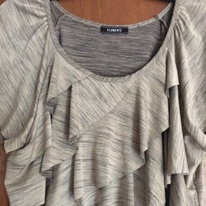 Elemenz Brown/Black Top, probably XL. Made of 96%polyester, 4% spandex. Machine wash cold.