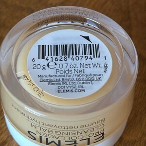 Used once. Experience the luxurious Elemis Pro-Collagen Cleansing Balm. This cream-colored balm gently cleanses and nourishes your skin, leaving it soft and radiant.