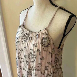 Nice pre-owned condition, no flaws to note. Blush pink color with muted animal print. Has braided straps and is lined.