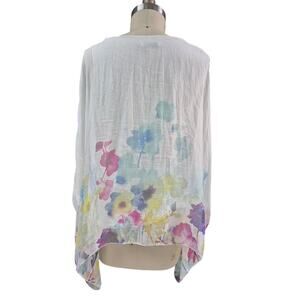 Elena Baldi Women Silk Top White Floral Asymmetrical Hem Italy Classic Fairy L