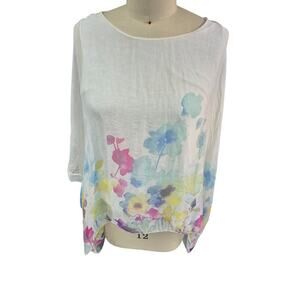 Elena Baldi Women Silk Top White Floral Asymmetrical Hem Italy Classic Fairy L