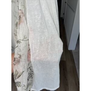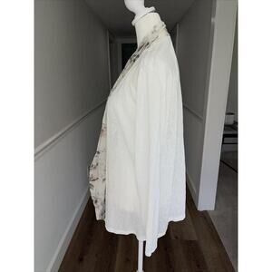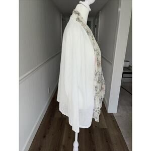Elena Baldi XL White Open Cardigan Slub Knit Dainty Silk Floral Insert Travel