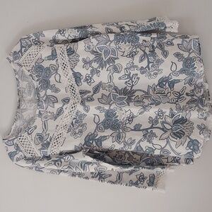 Elena Baldi Top all Linen Embroidery in Front & Sleeves In Excellent condition Made in,Italy pit to pit 19.5"' Shoulder to Hem 24.2", Size Small.