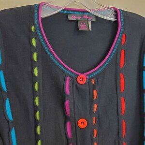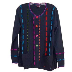 Elena Wang Soft Button Front cardigan sweater Colorful Accents Sz M