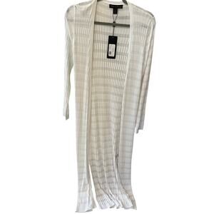 Elena Wang White Long Cardigan Open Front Size Medium NWT Boho