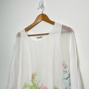 Elena Baldi Italy Women’s Silk White Floral Dolman Sleeve Top Size S