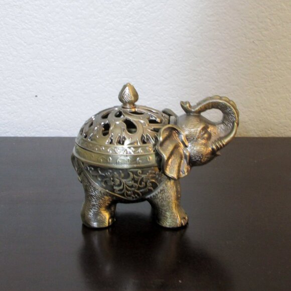 Silvertone elephant incense burner Approximately 6" x 5" Excellent condition.