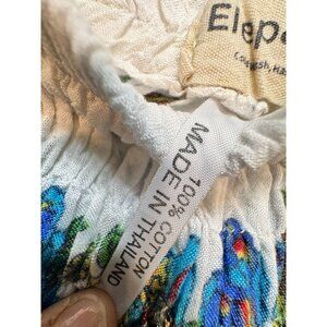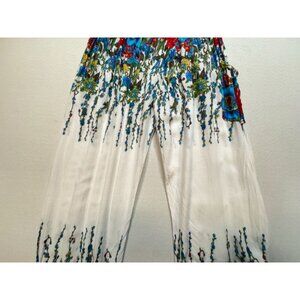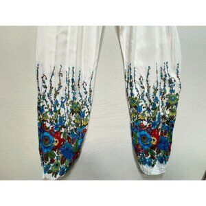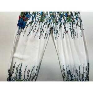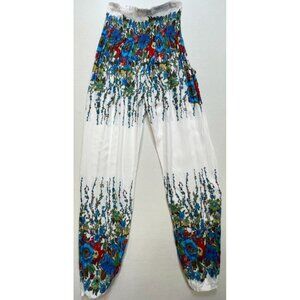Elepants Women's Boho Harem Hippie Pants Cold Wash White Blue Floral Stretch