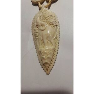 Elephant 15” beige carved beaded necklace pendant 4”