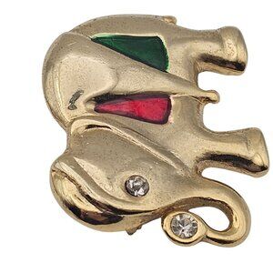 Elephant 3pc Lot Set Brooches Gold Toned Rhinestone Figural Pin Safari Animals