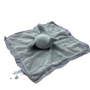 This soft security blanket, crafted for infant comfort, features an adorable elephant design. Ideal for soothing and comforting young ones, it is made with high-quality materials ensuring durability. The blanket's neutral color scheme makes it a versatile addition to any nursery.