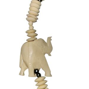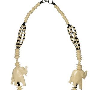 Unique necklace with elephant charms. Cream and brown beads. Perfect for a statement look.