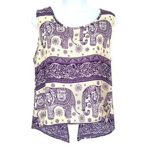 Elephant Boho Cropped Tank Top Purple Yellow Thailand Open Back M 100% Cotton