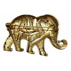 Elephant Brooch Pin Black Enamel Gold Color Figural Alloy Tribal Costume Jewelry