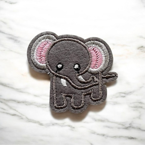 Adorable gray elephant patch with pink accents. Perfect for adding charm to any item. 2”