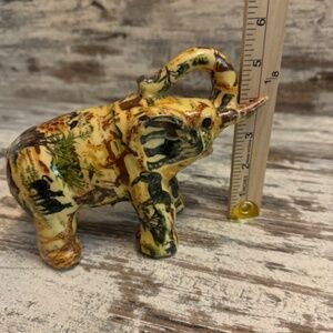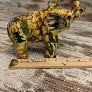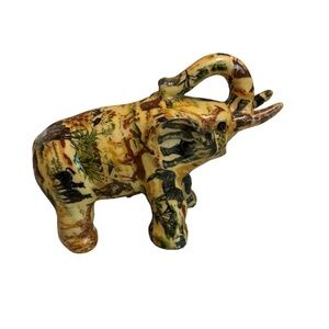 Add a touch of whimsy to your decor with this quirky safari-themed elephant figurine! This amusing piece, discovered tucked away in the basement, features an eclectic mix of animal prints and vibrant colors, making it a true conversation starter. The playful design showcases a charming elephant adorned with detailed illustrations of various safari animals, all wrapped up in a fun and unique pattern. Perfect for adding character to a shelf or desk, this figurine is sure to bring a smile to your face every time you see it. Whether you’re a collector of unique finds or just looking for something to brighten up your space, this elephant is ready to bring a bit of joy and laughter into your home!