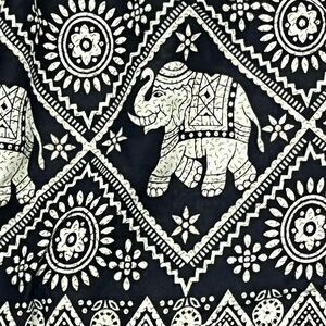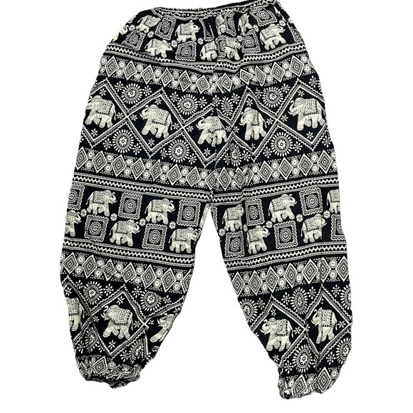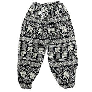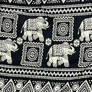 Elephant Harem Pants Phone Pocket Elastic Drawstring Waist Black Cream XL Boho