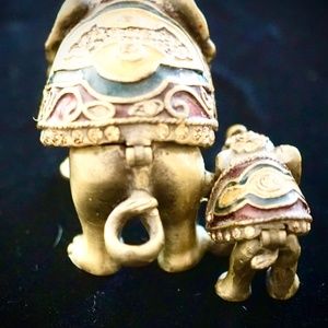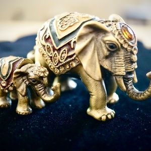 This is a cute mama elephant and baby elephant metal and enamel with rhinestones statue which has small compartments to hide some valuables. You could put it in your kitchen by your sink to put your rings in while you clean or also put it in your bathroom or by your bed stand for your jewelry pieces. Both mommy and baby elephant have compartments that open and close with the magnet.
