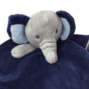 Elephant Navy Blue Cuddle Time Lovey Security Blanket Knotted Gray Satin Plush
