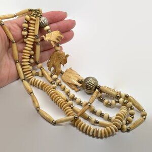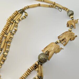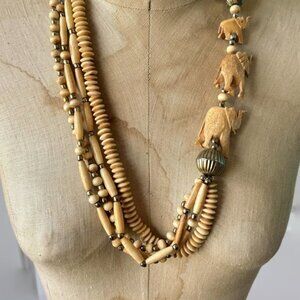 Elephant Necklace, Boho, Wood, Chunky, Trunk Up, Lucky, Vintage Necklace, Retro