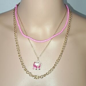Elephant Necklace Gold Tone Chain Pink Shells Elephant Pendent