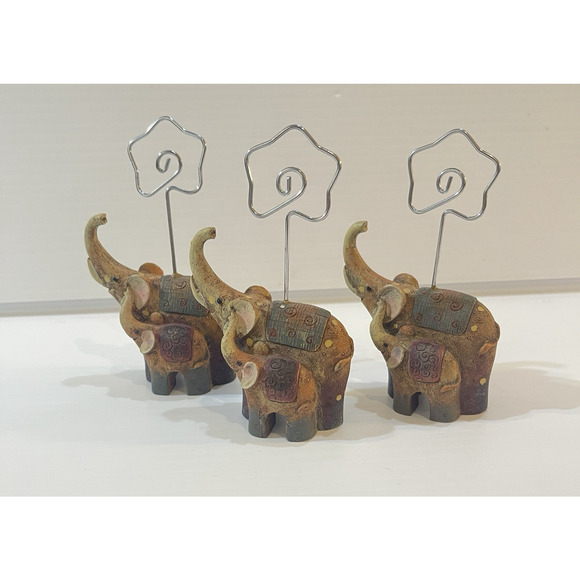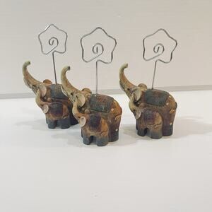 Elephant Photo Holder Set Of 3 Mom With Baby Trunks Up Figurine