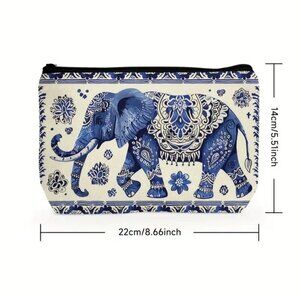 This is a cute, handy canvas bag with a fun elephant print. It's perfect for keeping your makeup or toiletries organized when you travel, or just for keeping things tidy at home. It's a good size for smaller items, and it folds down flat when you're not using it, so it doesn't take up much space. The canvas material is easy to wash, which is always a plus. Great for anyone who likes a bit of bohemian style.