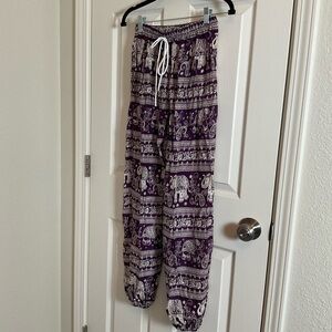 Stylish pants with an elephant print. Comfortable and trendy. Perfect for casual wear One pocket,waistband very comfy