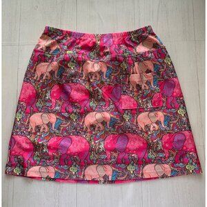 Elephant Print Womens Skirt By Skinz S Nylon & Spandex Vibrant Pink & Multicolor