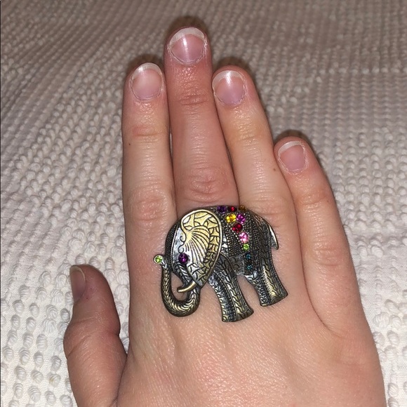 Cute little silver and bronze elephant ring - ring itself is stretchy for any ring size - fun multicolored rhinestones too!