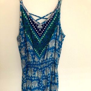 Blue/ green/ white spaghetti strap elephant print romper.