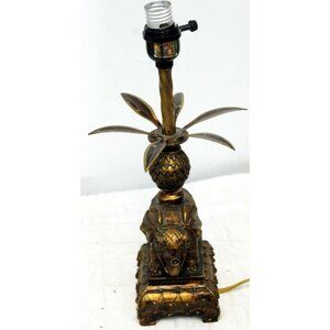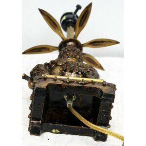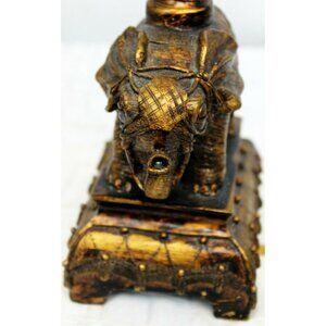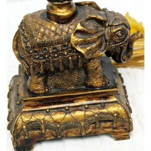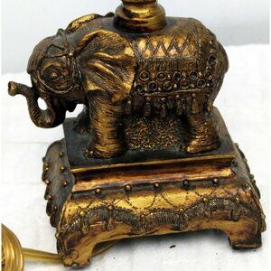 Elephant Table Accent Lamp Resin Bronze Colored Decorated Jungle Short Leaves