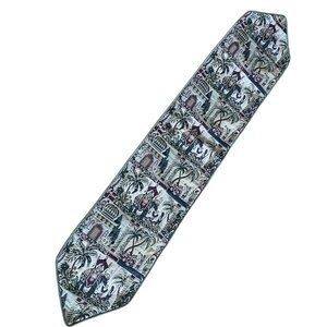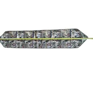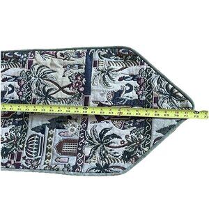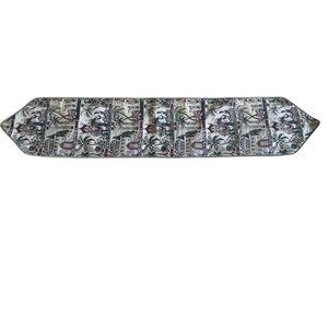 This Elephant Tapestry Table Runner is a decorative and heavyweight piece perfect for adding an exotic touch to your dining table. Featuring a pattern of elephants and palm trees, this multicolor tapestry runner is inspired by India and brings a sense of good luck and to your dining experience. Measuring 72" in length and 14.5 in width, this rectangular table runner is sure to elevate your kitchen or dining area with its unique design. There is wax on one end noted in pictures. It is not very noticeable, it blends in.