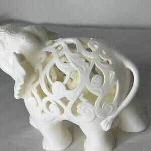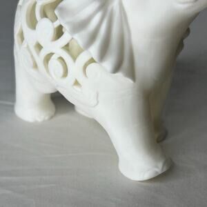 Elephant White Figurine Ornate Plastic Design Home Decor 6" Tall