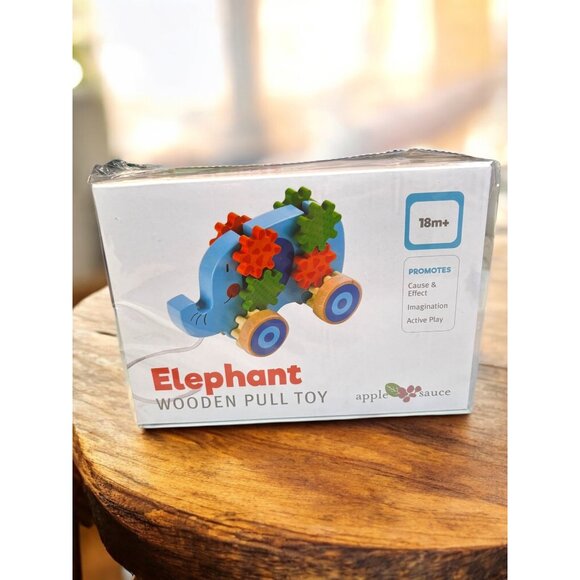 Elephant Wooden Pull Toy By Apple Sauce For Toddlers 18M+ With Colorful Gears Pr